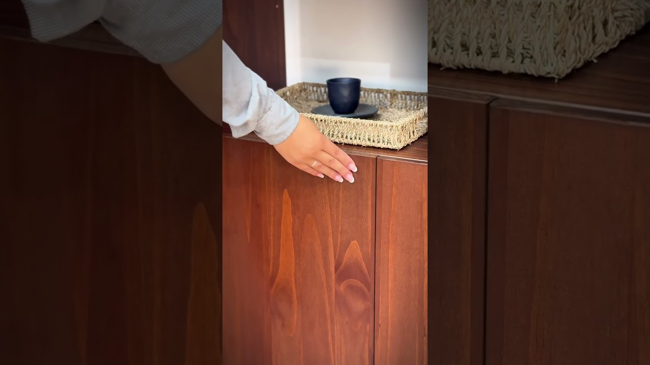 Der Wohnzimmerschrank Simona kombiniert praktischen Stauraum mit modernem Design. Sechs offene Fächer bieten Platz für Bücher, Deko und Alltagsgegenstände. Zwei Türen mit Push-to-open-Funktion sorgen für eine klare, grifflose Optik. Hinter den Türen befindet sich ein großzügiger Stauraum mit höhenverstellbaren Böden. Die warme Holzoptik in Kastanie und die Rückwände setzen stilvolle Akzente. Ideal als Bücherregal, Kommode oder hohes Sideboard.