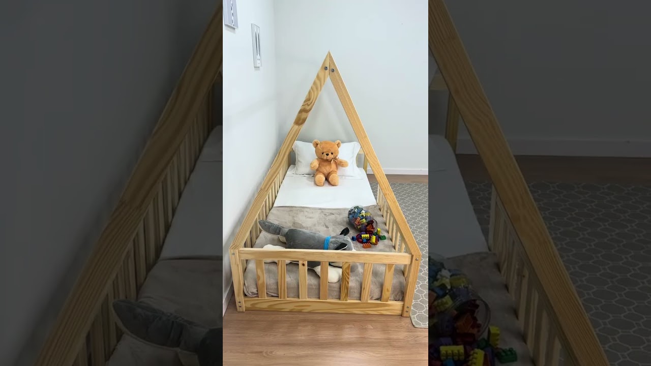 Das Hausbett NICOLAS in Hausform schafft eine Umgebung, die die kindliche Unabhängigkeit und Kreativität fördert – ganz im Sinne der Montessori-Pädagogik. Durch das bodentiefe Design kann Ihr Kind selbstständig ein- und aussteigen, was das Selbstvertrauen stärkt und die motorische Entwicklung unterstützt. Der beidseitige Rausfallschutz sorgt für Sicherheit, während das natürliche Kiefernholz für eine warme und einladende Atmosphäre im Kinderzimmer sorgt. Das Bett bietet ausreichend Platz zum Schlafen, Spielen und Entspannen.