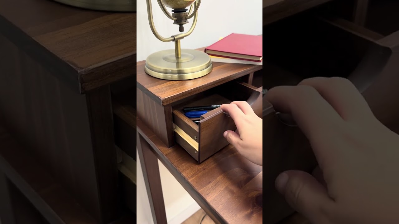 Dieser kompakte Bürotisch aus massivem Kiefernholz bietet eine ideale Kombination aus Stauraum und Funktionalität. Die 4 Schubladen ermöglichen eine praktische Organisation von Arbeitsmaterialien, während der integrierte Aufsatz eine optimale Platzierung des Bildschirms erlaubt. Dank seines klassischen Designs und der natürlichen Lackierung fügt sich der Tisch harmonisch in jedes Home-Office oder Büro ein.
