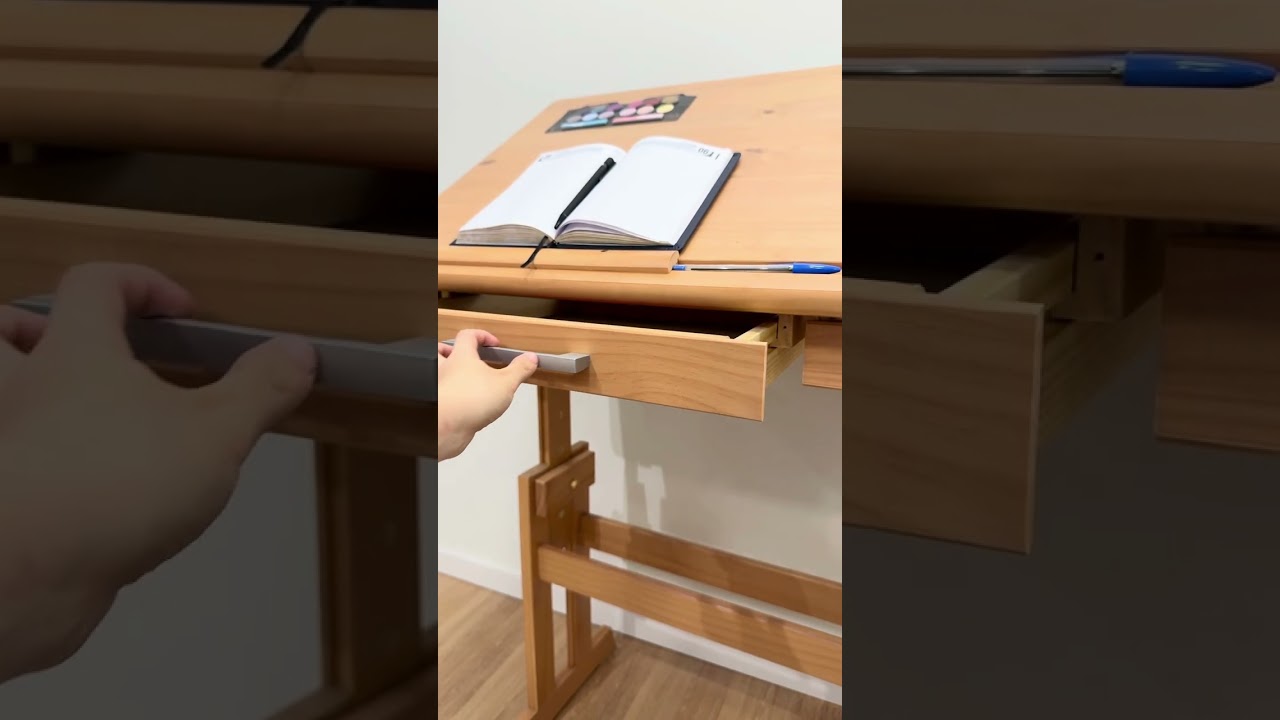 Bureau enfant OLIVIA, en pin massif, réglable en hauteur et plateau inclinable, vernis naturel